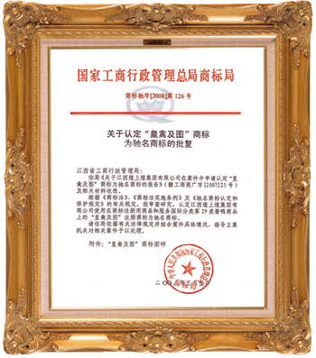 2008年3月5日,“皇禽及圖”注冊商標(biāo)榮獲“中國馳名商標(biāo)”